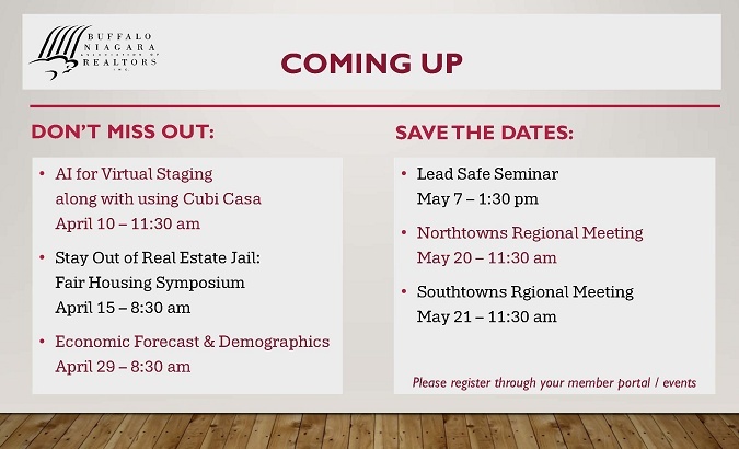 Don't miss out on these exciting events. All are free but you must register through your member portal/events.